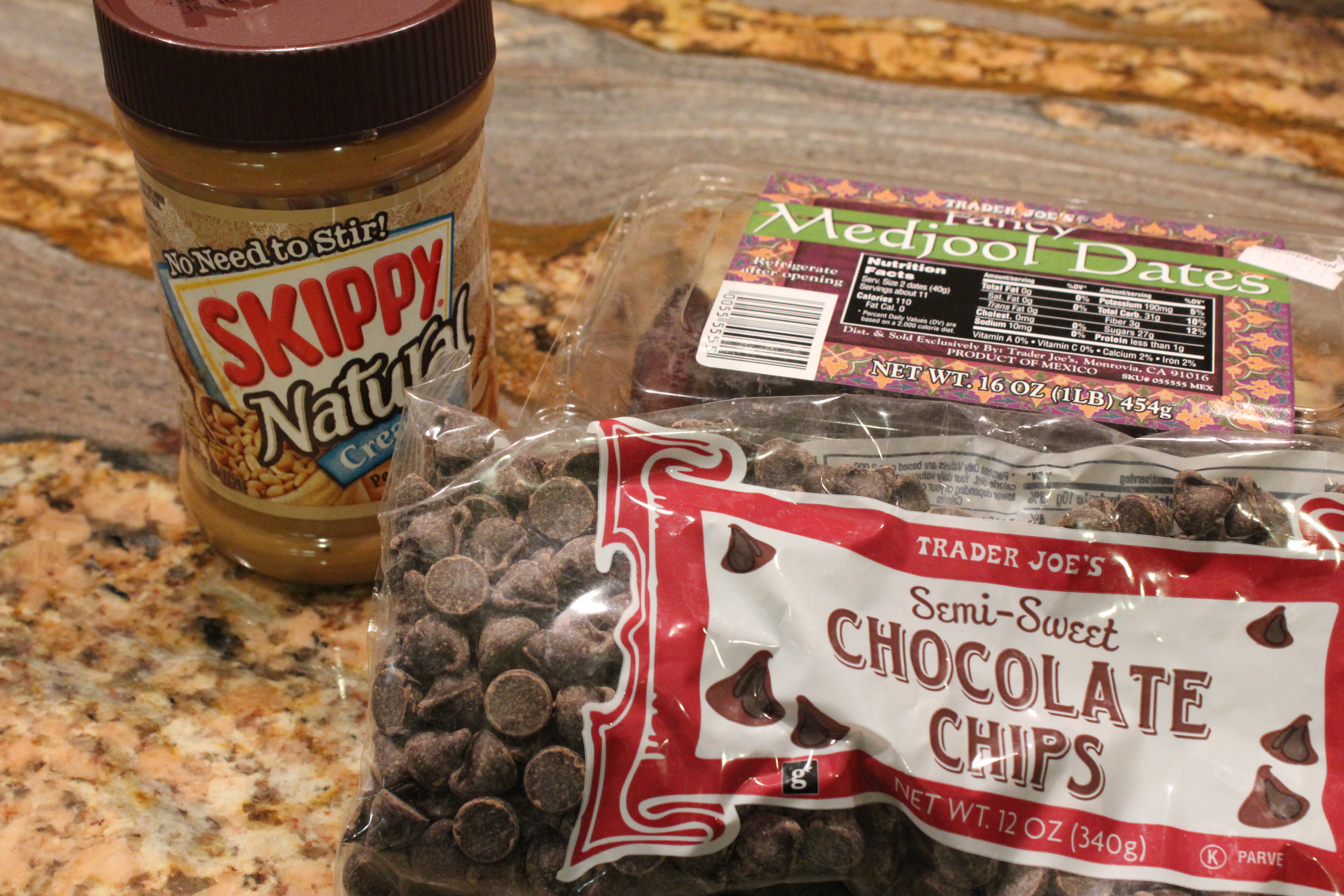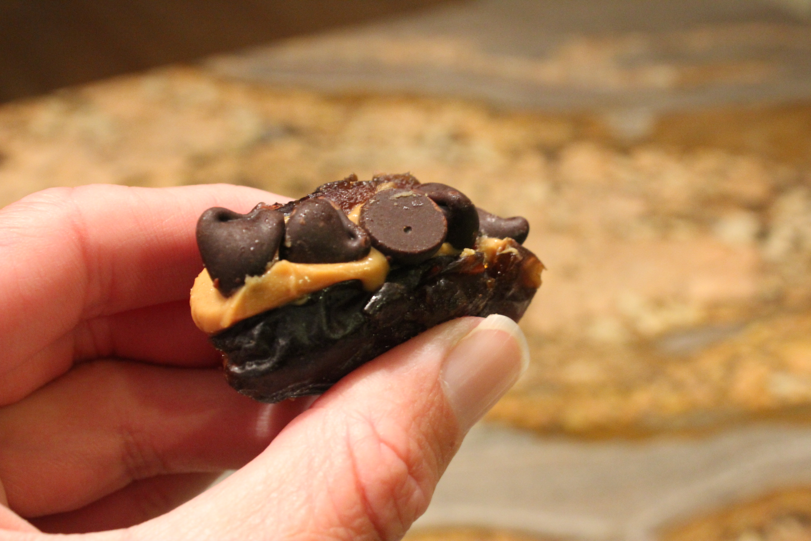 ….Medjool Dates with Surprises in the middle: Peanut Butter + Chocolate Chips