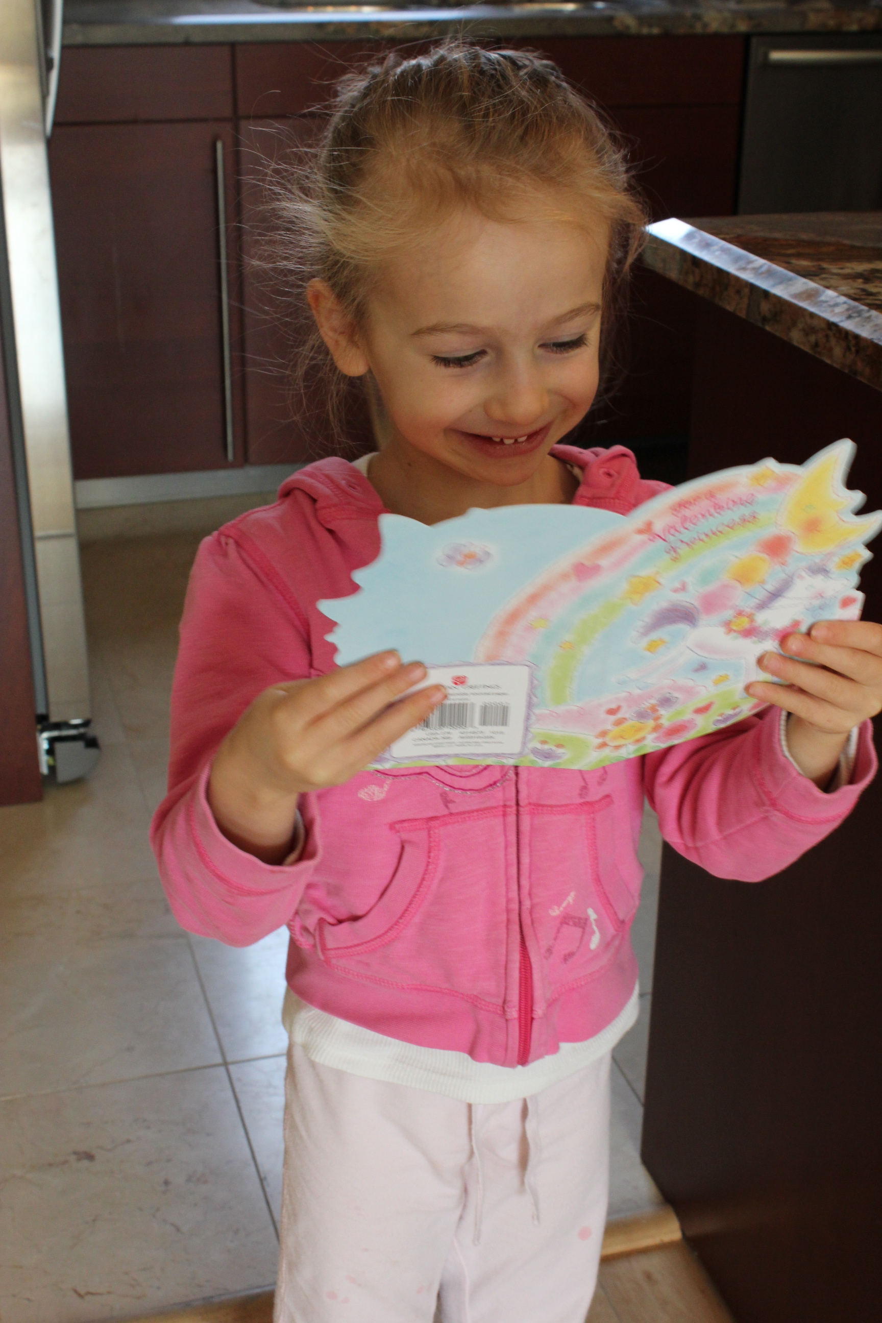 I was happy that she enjoyed a few little surprises. She’s clutching the card I gave her with chocolate in it. She is more into the card than the chocolate.